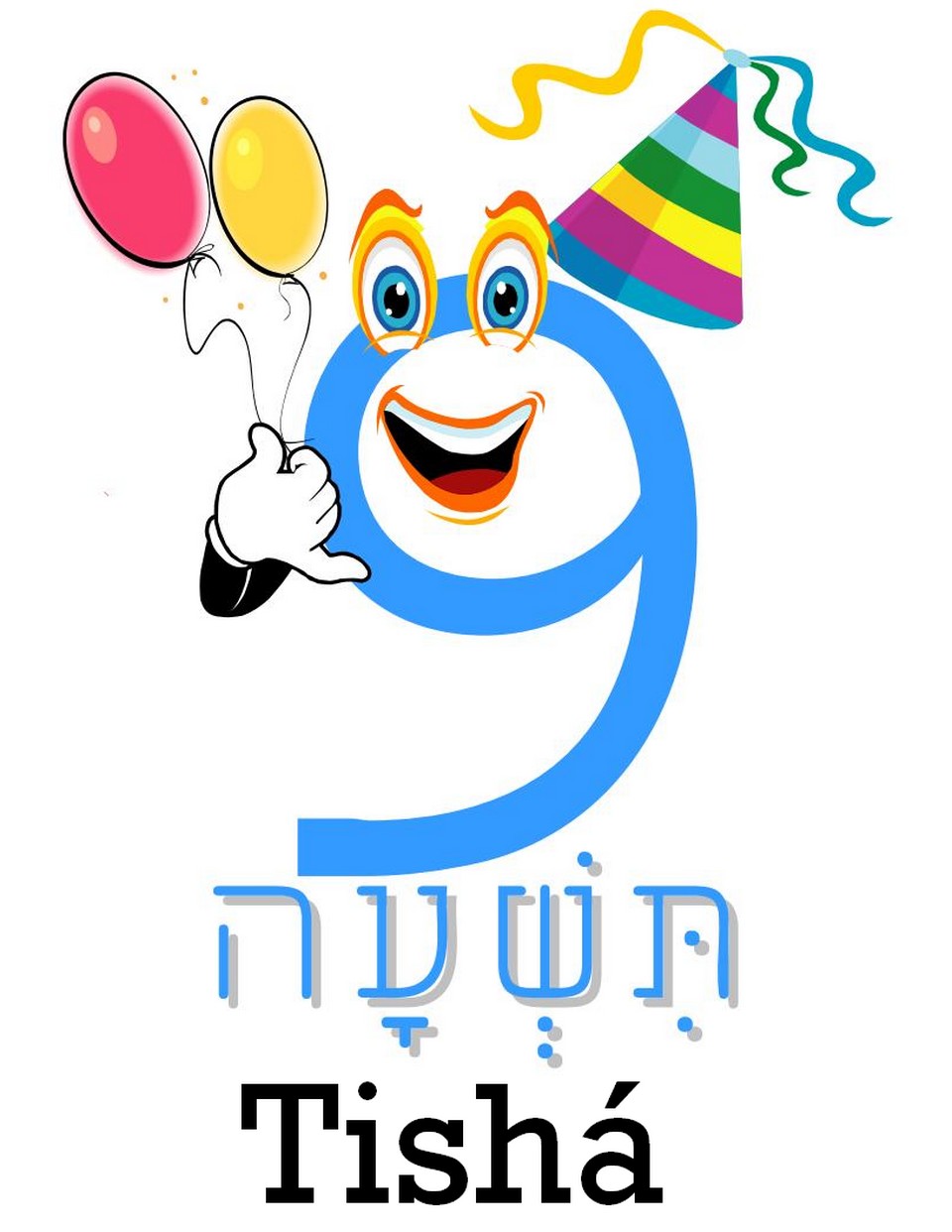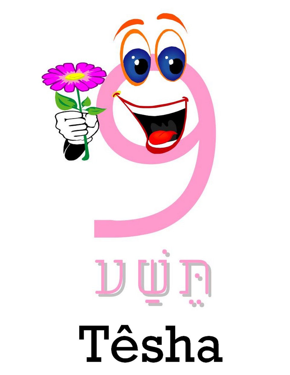 Abaixo seguem os números de 1 a 9, como se escreve em hebraico e sua transliteração: